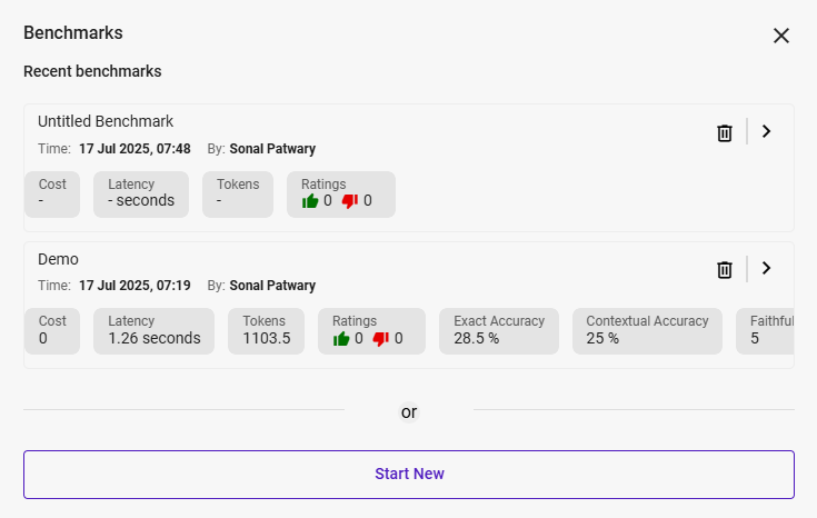 You’ll see past benchmarks (if any). To begin a new one, just click on “Start New”.