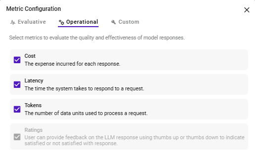 - Custom Metrics (you can create your own using LLM-as-a-Judge)