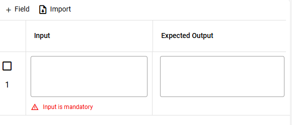 Click “Import” and upload a JSON file with multiple inputs and expected outputs.