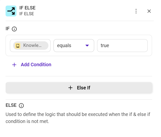You can expand your conditional logic by clicking the + Else If or + Add Condition buttons to create additional evaluation criteria: