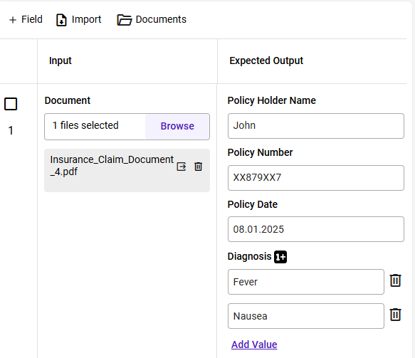 Note - For each line item added in the output schema, a separate field for expected output will be added.