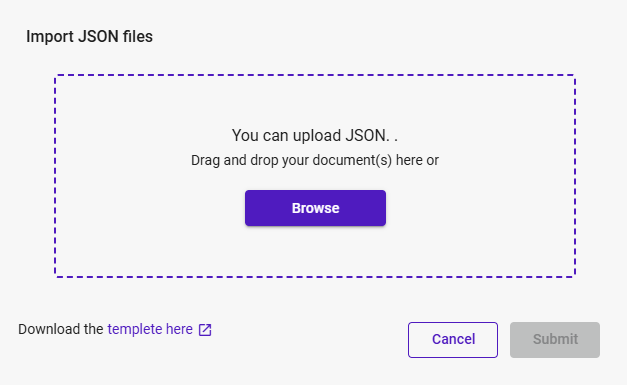 - Download the ‘Document Template’ ( illustrates the JSON structure which is supported by the system)